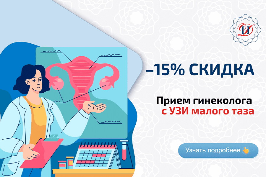 Прием гинеколога с УЗИ малого таза со скидкой 15% за 6200₽